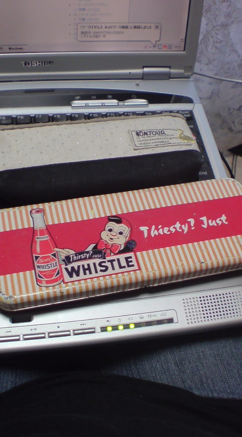 高校時代の奴は下側の缶ケースで、英語の綴りとキャラクターの笑顔が怪しいやつww